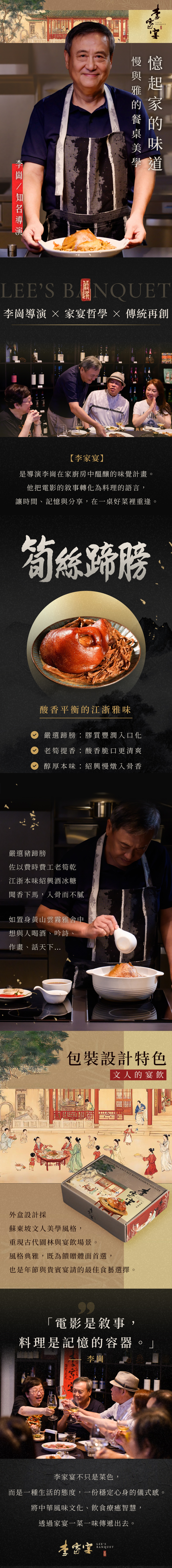 嚴選豬蹄膀,佐以費時費工老筍乾,江浙本味紹興酒冰糖,聞香下馬,入骨而不膩。如置身黃山雲霧雅舍中,想與人喝酒、吟詩、作畫、話天下…。